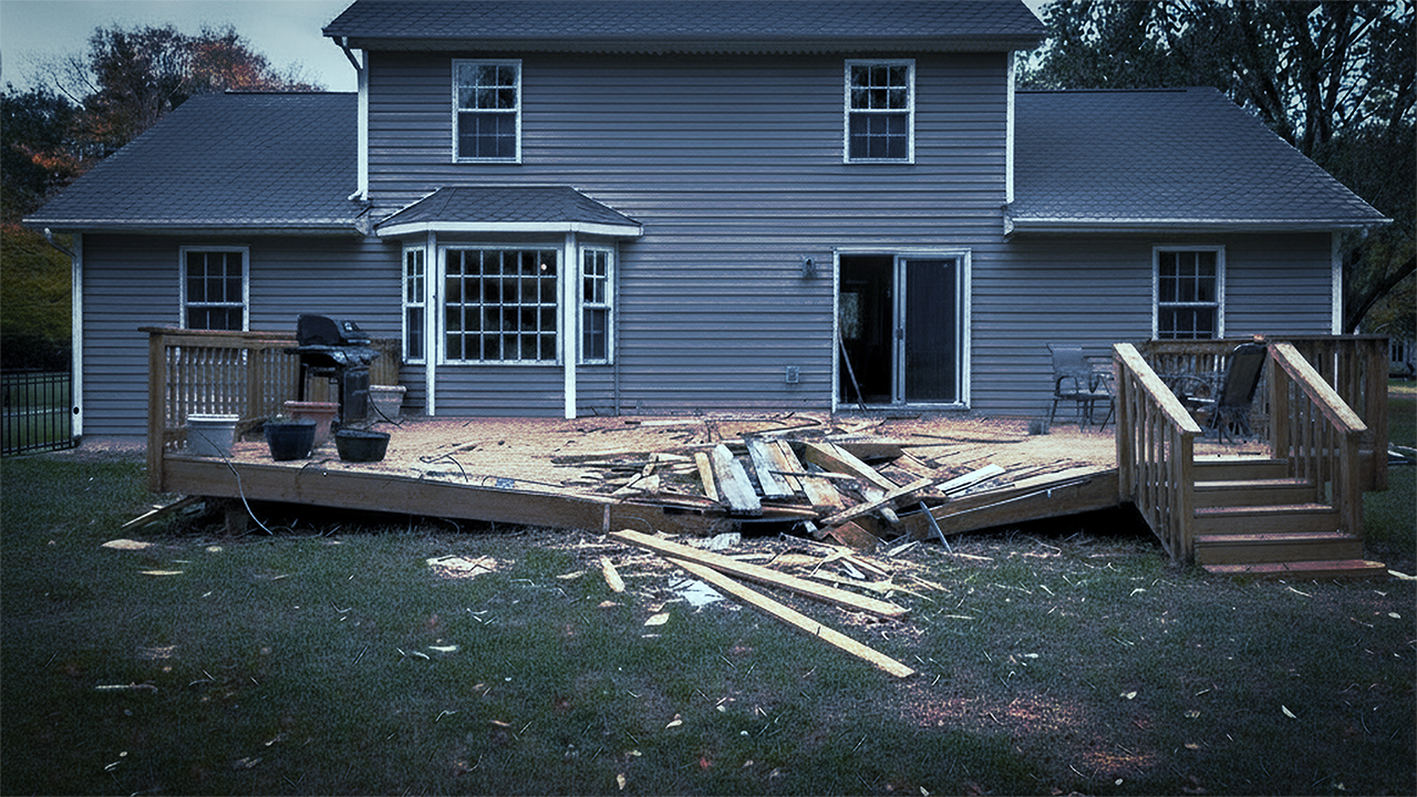 We met with a homeowner who was concerned about their aging deck and wanted to talk through replacement options. As we stood on it discussing the condition, the deck collapsed. Thankfully, no one was hurt.